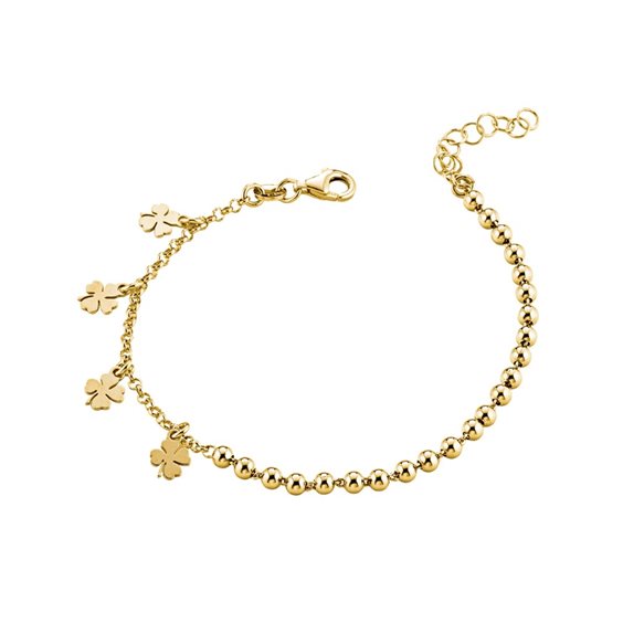 Il Bracciale double quadrifoglio - My little emotion è costituito da una catena in argento 925 con quadrifogli pendenti. La lunghezza è di 16,5cm + 3 cm di extension per regolarne la vestibilità.