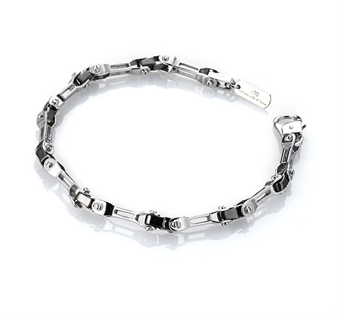 Bracciale da uomo in argento 925/000 composto da un cavetto in argento brunito ritorto con elementi centrali smaltati a fuoco. La chiusura e’ un moschettone in argento.