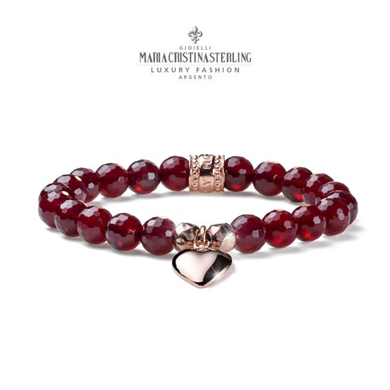 Art. G1889R • Bracciale elastico cm.18 in Argento 925 ‰ • Agata rubino ø 8 • Interamente realizzato a mano • Made in Italy • Disegnato per Maria Cristina sterling da Alessandro Magrino