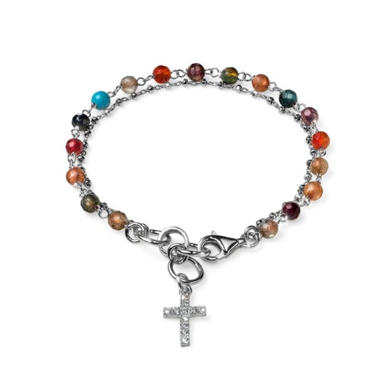 Bracciale DONNA in Argento 925‰ Misura cm. 16+3 chiusura moschettone Mix pietre ø 4 Interamente realizzato a mano
