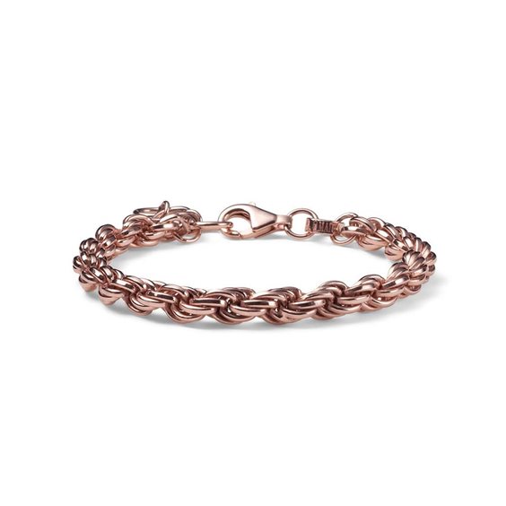 Il bracciale torchon Maria Cristina Sterling G4322R della Collezione Encanto è realizzato in argento 925 placcato oro rosa. La chiusura è a moschettone. La lunghezza è regolabile da 16 a 19 cm. Questo gioiello è interamente realizzato a mano secondo la tradizione orafa fiorentina e disegnato da Alessandro Magrino.