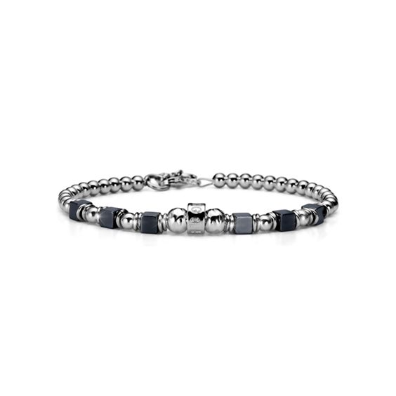 BRACCIALE UOMO EMATITE E SFERE ARGENTO • Bracciale in Argento 925‰ cm. 19+3 SFERE D4 e SFERE D6 • Ematite D4 • Interamente realizzato a mano • Made in Italy • Disegnato per Mariacristinasterling da Alessandro Magrino