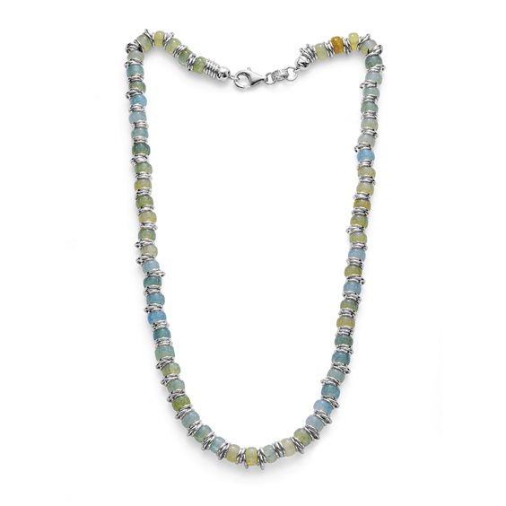 • Collana Snake 45 cm con anellini diametro 6 mm • In argento 925 oro rosa e Glass Roundel Ocean • Chiusura moschettone • Interamente realizzato a mano • Made in Italy • Disegnato per Maria Cristina Sterling da Alessandro Magrino