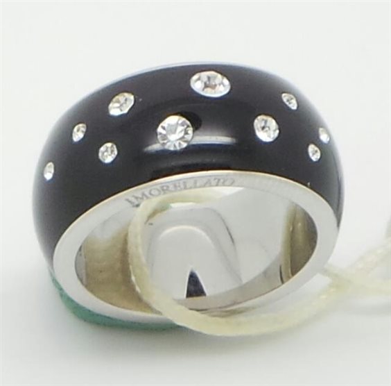 Fede in acciaio con smalto di colore nero ecristalli. Misura 14.