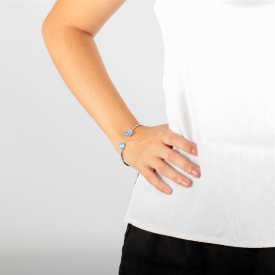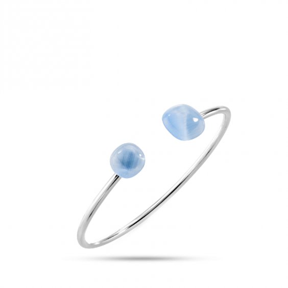 Bracciale donna in argento 925% , diametro cm 6 , modello a schiava semirigido , 2 pietre scalari , occhi di gatto azzurre. L'immagine è indicativa , la confezione può variare di forma e colore.