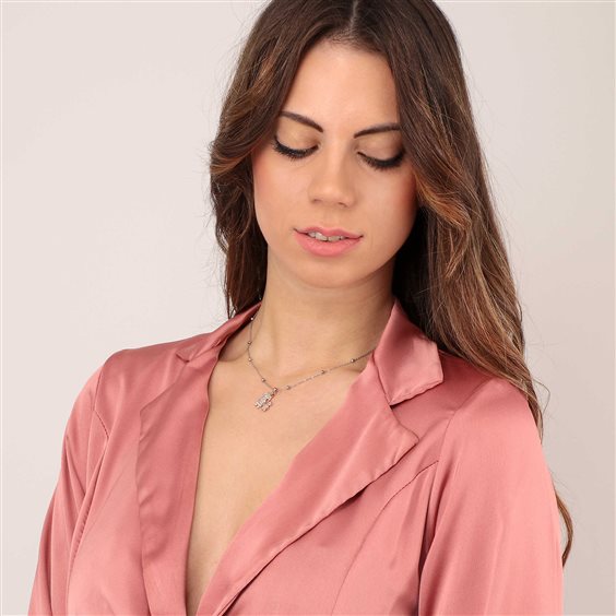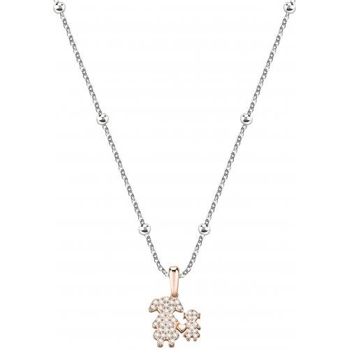 Collana girocollo in acciaio, pendente mamma e bambina colore oro rosa con zirconi.