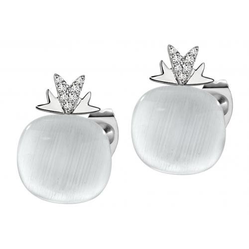 Orecchini donna , argento 925% , pendente cm 1,5 , pietre occhi di gatto bianche , zirconi bianchi incastonati. Immagine indicativa , la confezione può variare di forma e colore.