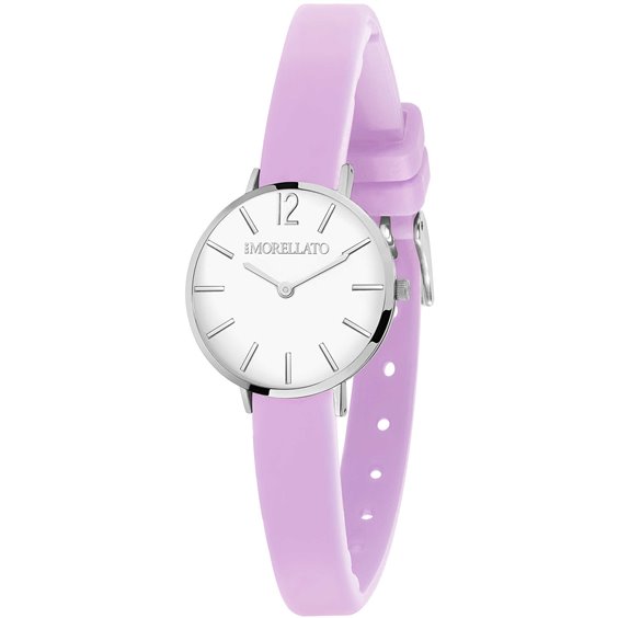 Orologio Solo Tempo Da Donna Di Morellato Della Collezione Sensazioni Summer. Modello Con Cassa In Ottone Lucido Della Dimensione Di 24X30,6Mm, Quadrante Di Colore Smaltato Bianco E Vetro Minerale. Il Cinturino È In Silicone Di Colore Lilla Con Fibbia Ardiglione. Orologio Con Mov.Y120Ey E Resistenza All'Acqua Di 3 Atm.