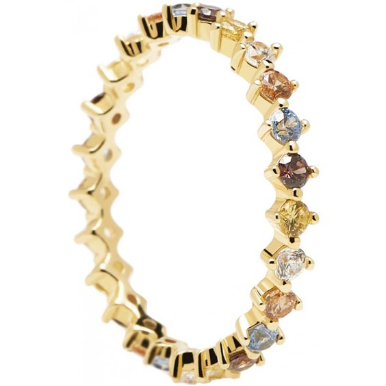 Anello in oro Five Sage Materiale: Argento sterling 925 Finitura: placcatura in oro 18k Pietre: Corindone blu zaffiro; Zirconia rodolite; Zirconia champagne; Zirconia giallo oro; Zirconia bianco puro