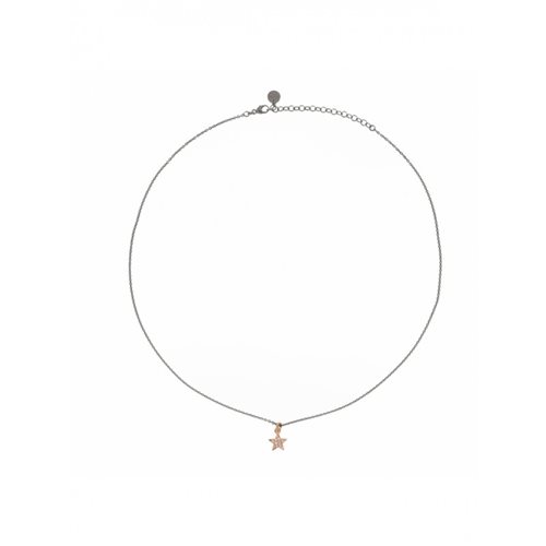 RUE DES MILLE - GIROCOLLO CATENA BRUNITA CON CIONDOLO STELLA ZIRCONI ROSA Girocollo con catena brunita e ciondolo in zirconi rosa. Argento 925%, galvanica oro rosa.