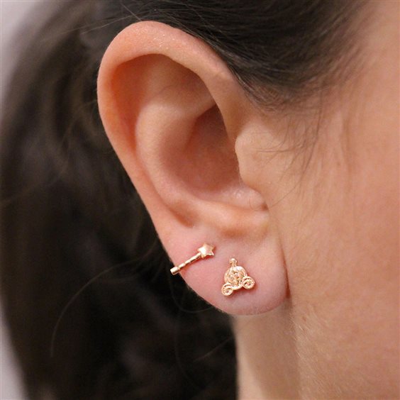Orecchini a lobo con soggetto bombato Soggetto: Carrozza/Bacchetta Finitura disponibile: Placcatura oro rosa 18kt o placcatura rodio o o placcatura oro giallo 18kt Materiale: Argento 925