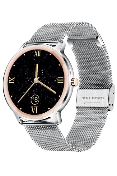 Cassa metallo - Schermo LCD - Fondello plastica con sensori - Caratteristiche connessione bluetooth, ricaricabile tramite USB - Batteria durata in standby 30 giorni, 5 giorni in utilizzo normale - Bracciale acciaio maglia Milano o Cinturino in pelle - Water Resistant IP67 - Compatibilità Android 4.4 / Apple IOS 9.0 o superiori - Protezione per schermo in vetro sottile - Funzioni smartwatch: menu' a scorrimento, sfondo personalizzabile, cronografo, accensione schermo tramite rotazione polso, controllo luminosità schermo, foto personalizzate, timer, allarme, impostazione durata accensione schermo - Funzioni benessere: monitoraggio della qualità del sonno, livelli di ossigeno(02) nel sangue, elettro-cardiogramma (ECG), frequenza cardiaca e pressione sanguigna - Funzioni sport: promemoria per l'idratazione, calcolo consumo calorie, Contapassi distanza, Tracciamento del percorso, meteo, battiti per minuto e Tempo (BPM/CAL/TEMPO) Sport compatibili: Camminata, Corsa, Alpinismo, Bici e Badminton - Funzioni smartphone: trova orologio, notifica messaggi e chiamate, controllo remoto camera e musica, giochi.Smartwatch con cassa in metallo sottile (7,3 mm) e dal design elegante. Bracciale in acciaio maglia Milano. 30 giorni di durata della batteria in standby.