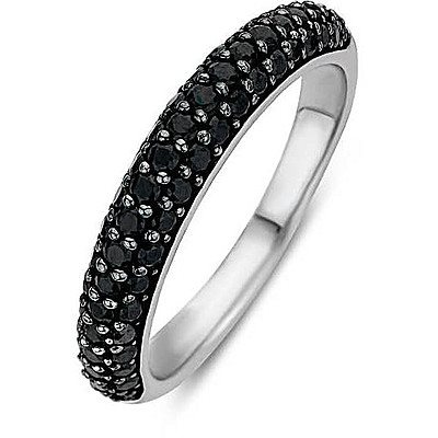 Anello da donna di ti sento - milano. Anello in argento rodiato con placcatura nera con zirconi. Il colore del gioiello è nero. Misura: 18. La referenza è 12105zb/58