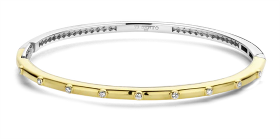 Questo bracciale rigido placcato oro TI SENTO 23031ZY è un gioiello radioso e affascinante che combina con disinvoltura raffinatezza e spirito contemporaneo. È realizzato in argento sterling 925 di alta qualità e placcato oro giallo per un effetto caldo e lussuoso. Le brillantissime pietre di zirconia cubica, montate con cura a mano sulla fascia, donano al gioiello un tocco glam ed elegantissimo. Con il suo design liscio e slanciato, questo bracciale rigido scivola con grazia sul tuo polso ed è comodo e piacevole da portare. Decora il tuo polso con eleganza, lusso e raffinatezza. Indossalo da solo o insieme ad altri bracciali per combinazioni semplicemente uniche. Tutti i nostri bracciali sono privi di nickel e ipoallergenici.