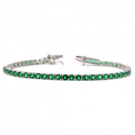 Bracciale Tennis da Donna in argento 925‰ laminato in oro bianco con zirconi verdi