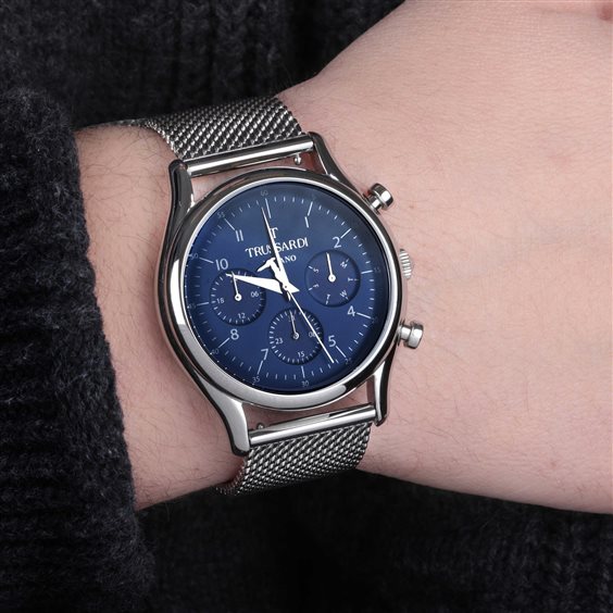 Prodotto: orologio multifunzione uomo Trussardi T-Light R2453127005 Orologio Multifunzione Da Uomo Di Trussardi Della Collezione T-Light. Modello Realizzato In Acciaio. La Cassa Ha Dimensione Di 50,8 X 43 Mm Con Finitura Lucida, Il Quadrante È Di Colore Blu Opaco E Vetro Minerale. Orologio Con Cinturino In Acciaio Di Colore Argento E Fibbia Ardiglione. La Resistenza All'Acqua È Di 5 Atm. Movimento Al Quarzo Tmi Vx9Je1 6H. La Referenza È R2453127005 Questo multifunzione verrà spedito con Scatola Originale Trussardi