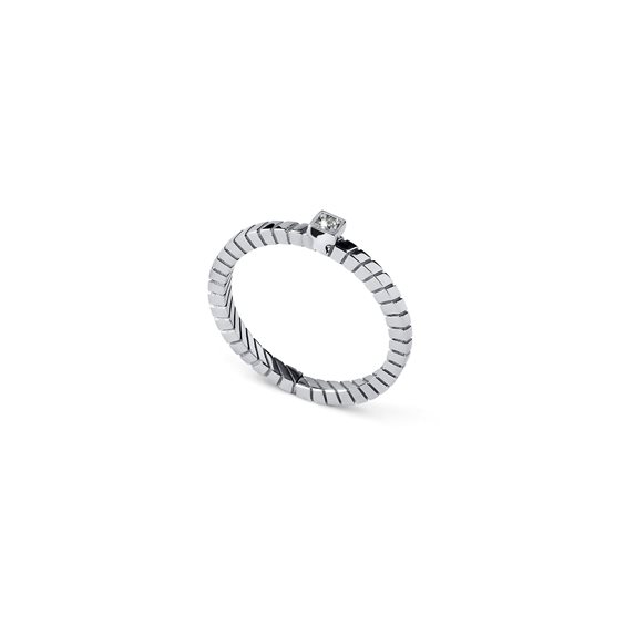 Anello in argento rodiato con tubo zigrinato e solitario centrale con zircone. Un accessorio dal fascino moderno e raffinato, perfetto in ogni occasione. Unoaerre rivoluziona il concetto di eleganza classica con una linea di gioielli dal design minimal ed eclettico, perfetti per essere mixati insieme in tutte le differenti declinazioni di misura Misura 12