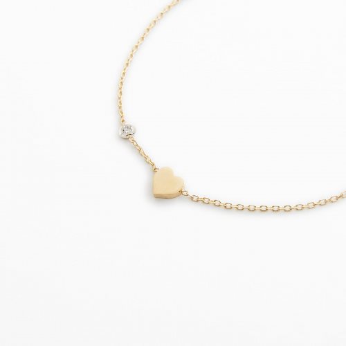 Bracciale di catena forzatina in oro 18kt con centrale a cuore in finitura lucida e diamante naturale ct.0,01 di taglio brillante. Chiusura a moschettone, targhetta con logo UNOAERRE e finale con piccolo cuore pendente. Lunghezza 17,5-19 cm. Una creazione dal design essenziale, ma raffinato e curato nei minimi dettagli. Un dono speciale che scalda il cuore.