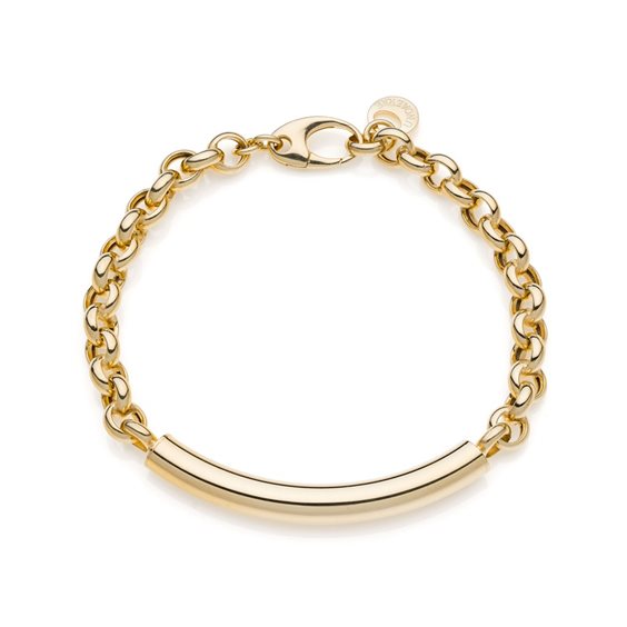 bracciale con catena forzatina maglia quadrata appartenente alla collezione “Fashion Jewellery” di Unoaerre, realizzato in in Argento 925% dorato con bagno galvanico in Oro 24k. Il Bracciale ha una lunghezza totale di 19,00 cm. con una chiusura con moschettone.