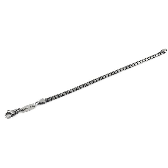 Bracciale uomo con maglia veneziana. Piastrina con logo Unoaerre. Finitura ossidata, lavorazione artigianale. mis. 21