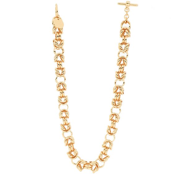 Collana da donna, catena "bizantina", chiusura a T-bar. Bronzo con bagno in oro. Lunghezza cm. 45,0.