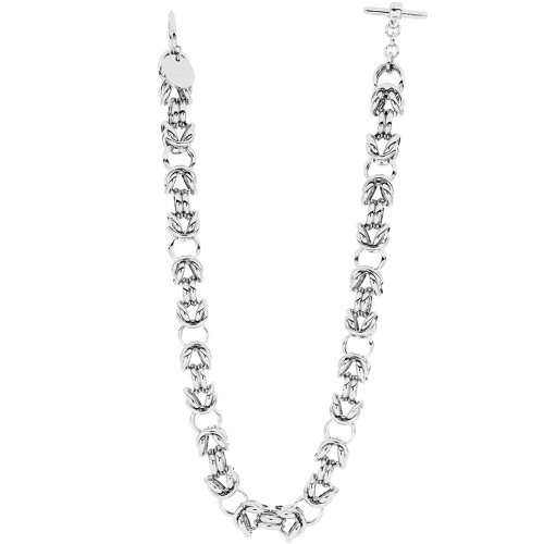 Elegante collana di catena "bizantina" in bronzo con chiusura a T-bar. Lunghezza 45 cm. Una collana dal fascino unico, retrò e sofisticato.