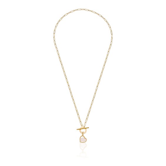 Collana in oro 9kt con pendente a forma di cuore in madreperla, catena forzatina 40,5 cm e chiusura T-bar torchon. Dall'unione di sapiente manifattura e cura al design, nasce un gioiello unico che esprime con eleganza un valore inestimabile. Un omaggio all'amore, alla vita, ai sentimenti più veri.
