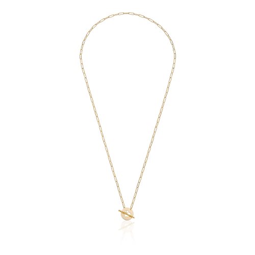 Collana in oro 9kt con pendente con sagoma centrale a forma di cuore, catena forzatina lunga 48,2 cm e chiusura T-bar torchon. Un gioiello elegante la cui linea essenziale è esaltata dalla lucentezza dell'oro e da dettagli preziosi tra i quali emerge un solo protagonista: il cuore, icona d'amore.