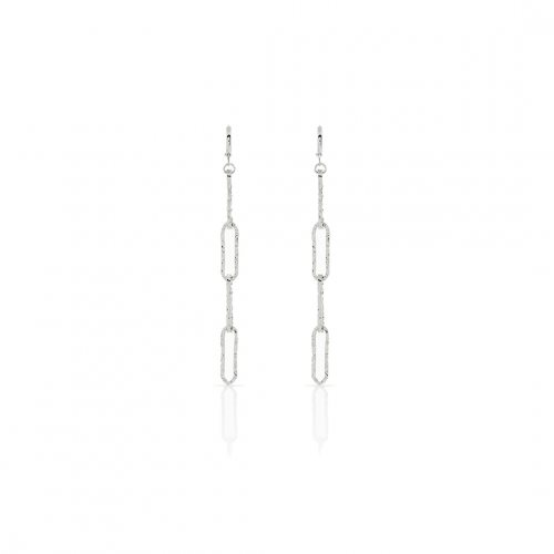 Orecchini lunghi in maglia "paper clip" in finitura diamantata. Ispirati all'estetica punk, questi particolari orecchini con maglie allungate "paper clip" dal look ribelle sono resi preziosi ed eleganti dalla raffinata finitura diamantata. Perfetti per un tocco grintoso e scintillante.